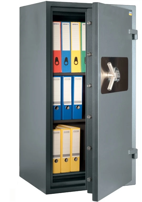 - на сейф установлен электронный замок PS 600 высокого класса секретности, снабжённый защитой от подбора кода и памятью, не зависящей от состояния батареи;