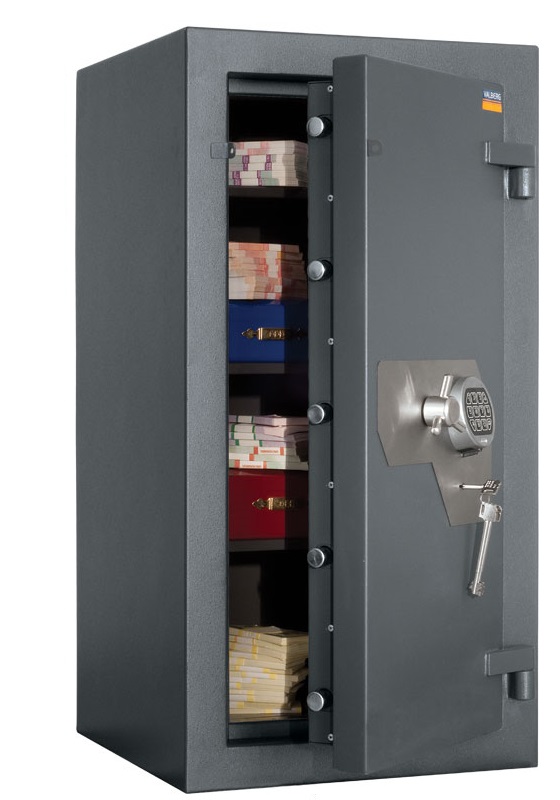 - Дверь сейфа запирается электронным замком PS-600 с энергонезависимым кодом и ключевым замком KABA MAUER производства Германии.